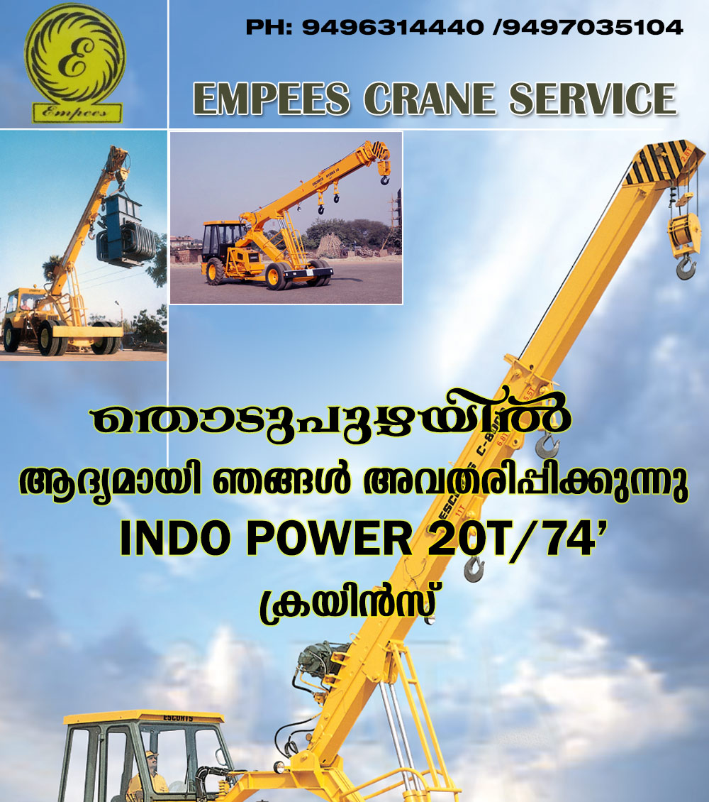 Empees Crane Service offers Crane Rental Service and Hydraulic Crane Service in and around Thodupuzha, Pala and Kottayam.